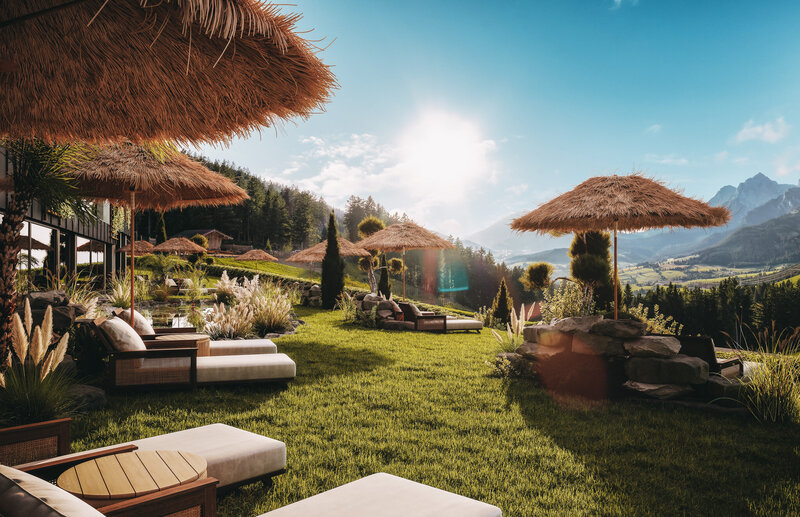 Manchmal beginnt Entspannung nicht drinnen – sondern unter freiem Himmel. Im Cloud Nine Spa Outdoor wartet der 42 m lange Infinitypool „Blue Heaven“ mit Blick über das Steinerne Meer, während der Naturbadeteich „The Golden Lake“ die pure Ursprünglichkeit der Alpen spürbar macht. Weiche Liegewiesen, Boho-Lounges und ein erfrischendes Kneippbecken schenken Momente der Leichtigkeit – von der ersten Morgensonne bis zum goldenen Abendlicht. Hier wird Wellnessurlaub im Salzburger Land zu einem Erlebnis aus Natur, Weite und Freiheit.