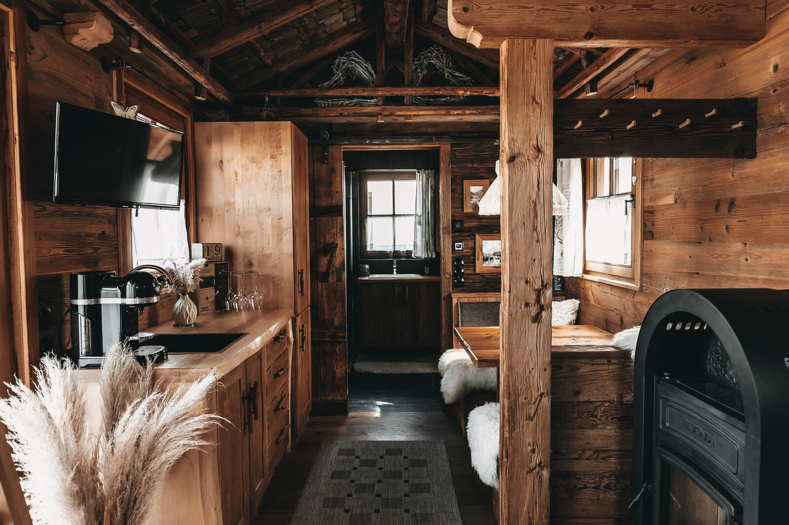 Der ideale Rückzugsort für Naturliebhaber: Unser Tiny House verfügt über ein Zirbenbett sowie eine gemütliche Sitzecke und bietet Platz für bis zu vier Personen. Es ist ein Garant für unvergessliche Momente, ganz auf das Wesentliche reduziert. Erleben Sie die Ruhe und Schönheit unberührter Natur in Ihrem eigenen kleinen Kosmos – mit privater Spiegelsauna und atemberaubendem Blick auf die Berge, direkt neben unserem Wildtiergehege.