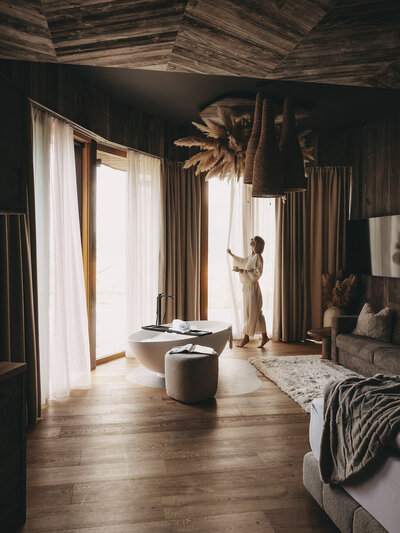 Willkommen im ersten Boho Hotel der Alpen. Auf 1.150 m über Maria Alm im Salzburger Land erwarten dich 38 Zimmer & Suiten, die Natur und Design vereinen. Holz, Leinen, Stein – Materialien, die Ruhe spürbar machen. Jede Kategorie erzählt ihre eigene Geschichte: vom Himmelnah über Traumfänger bis zum Luftschloss. Immer mit Balkon und Blick ins Steinerne Meer, viele mit freistehender Badewanne, manche mit privater Sauna oder Whirlpool. Es ist dein Rückzugsort zwischen Himmel & Erde – für Ruhe, Freiheit und Leichtigkeit. Ob Wellnessurlaub im Salzburger Land, Auszeit im Designhotel oder Bergurlaub am Hochkönig: hier findest du Raum zum Ankommen, Loslassen und Träumen.